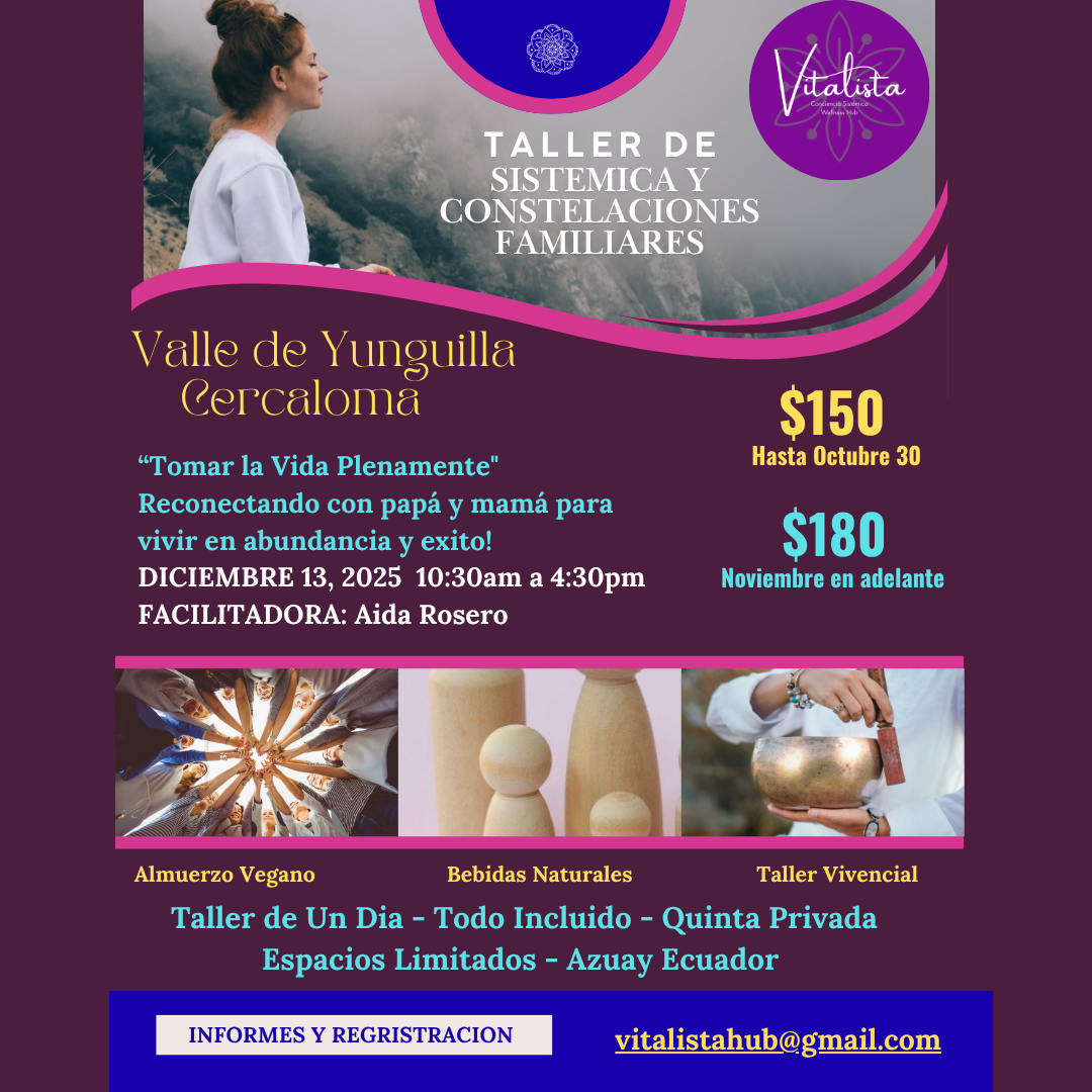A través de ejercicios sistémicos vivenciales, dinámicas grupales y momentos de integración consciente, aprenderás a reconocer tus vínculos con el sistema familiar, restaurar el orden interno y abrirte a recibir la vida con gratitud.